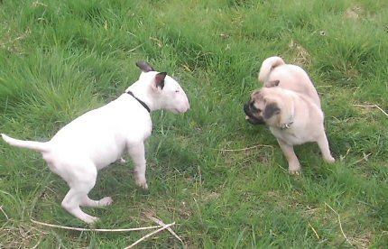 Pugsley is also interested in local wildlife, he has been walking in Whitwell Woods this morning, here is one picture of him there, and there are more if you go here: http://www.bull-terriers.co.uk/pugs/pugsley2.htm